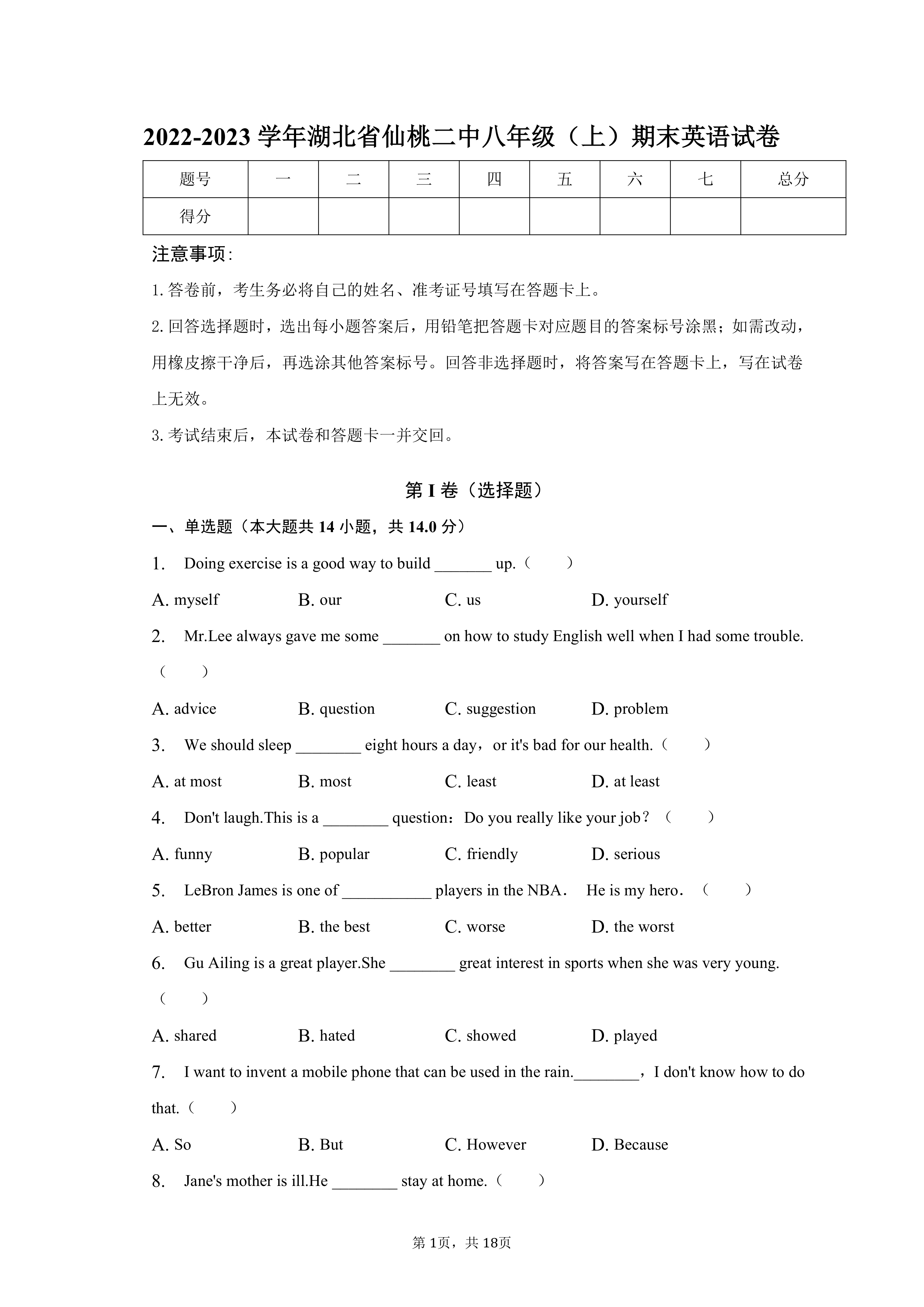 2022-2023学年湖北省仙桃二中八年级(上)期末英语试卷(含解析) 时间:2025-03-16 热度:°C 加入收藏 我要投稿 点赞() yingyu20232022 上一篇:八年级英语上册全册导学案(66页) 下一篇:返回列表