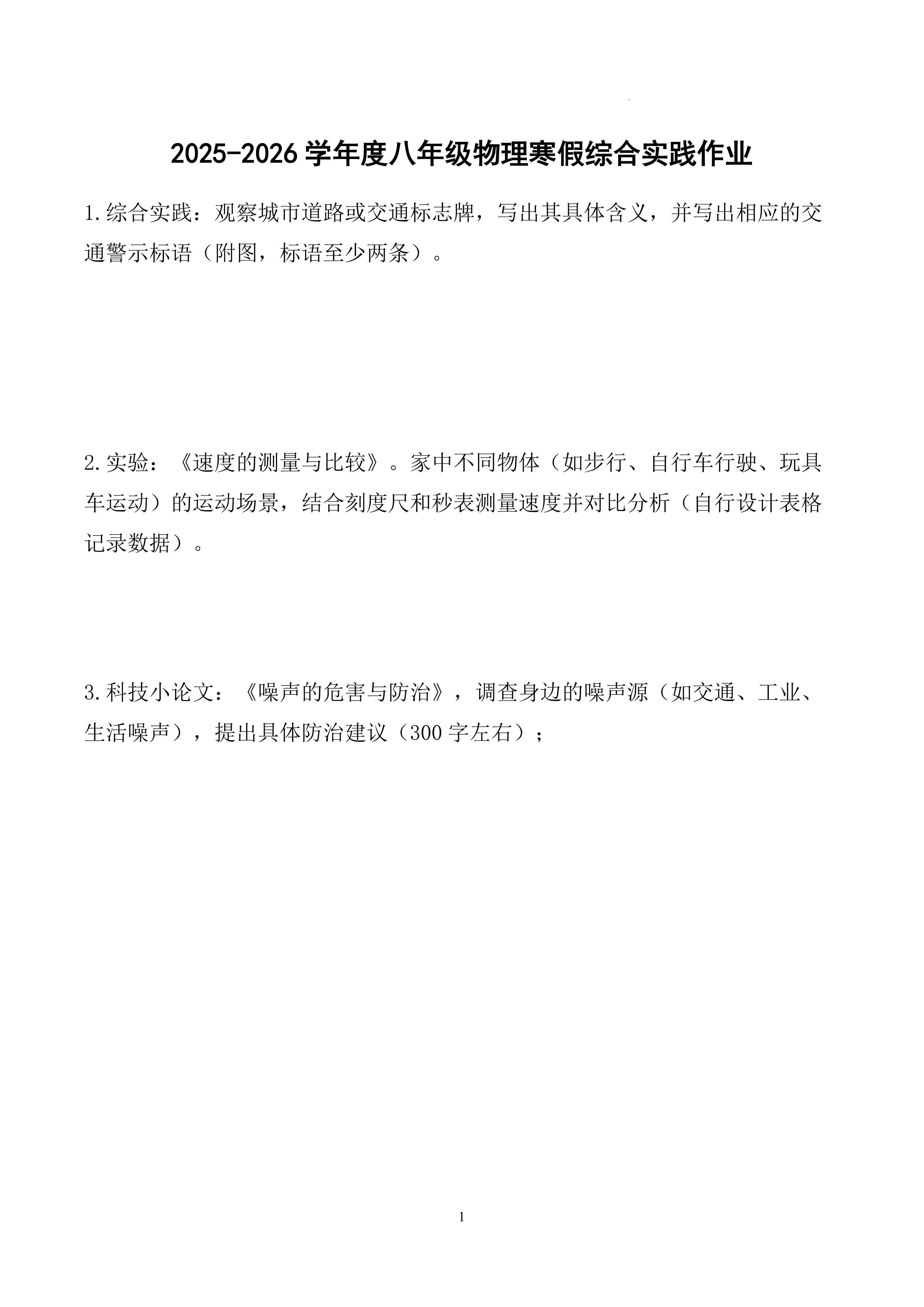 2025-2026学年八年级物理寒假综合实践作业