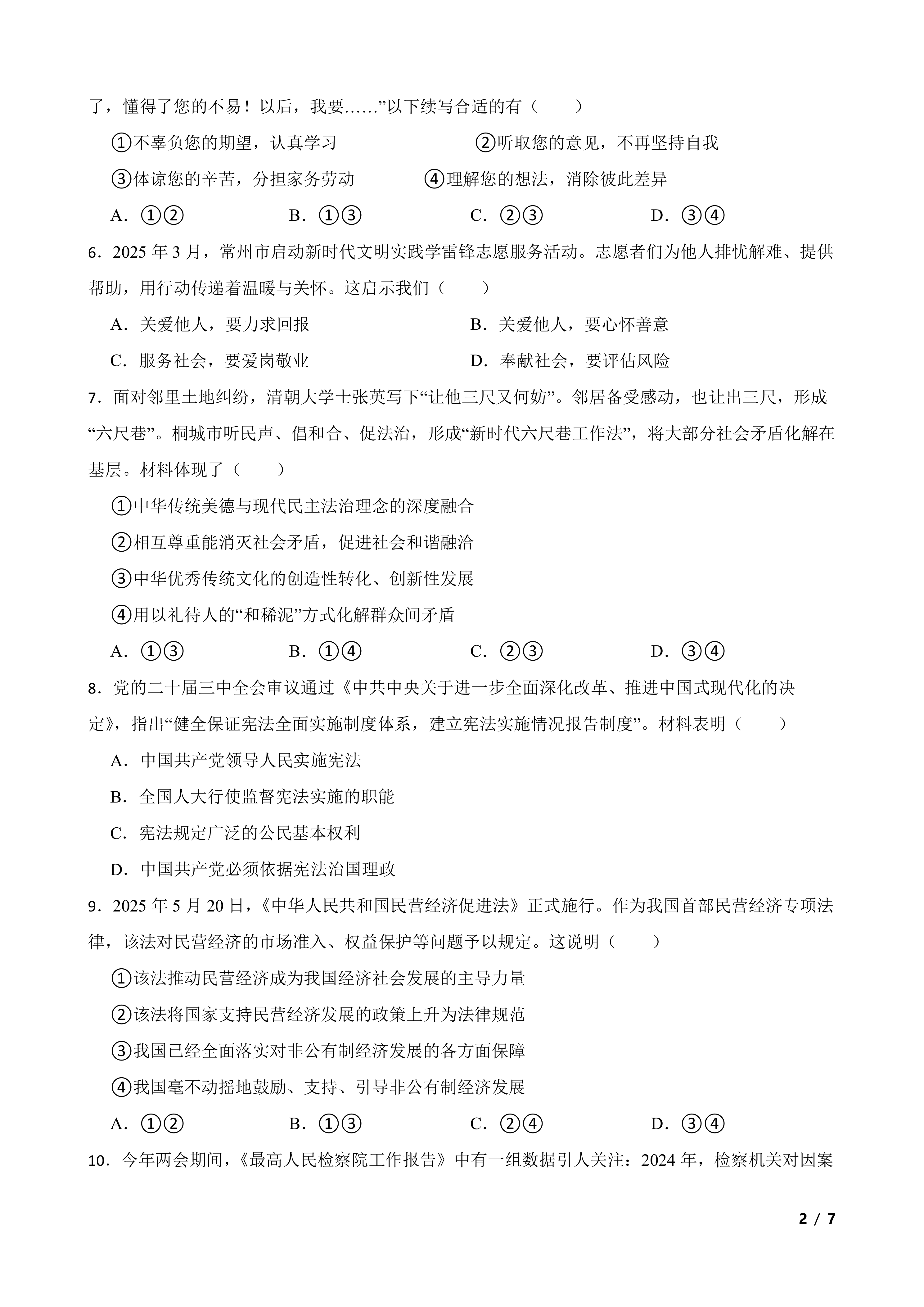 [中考真题]江苏省常州市2025年中考道德与法治真题 时间:2026-03-05 热度:°C 加入收藏 我要投稿 点赞() zhengzhi中考真题 上一篇:2025年中考语文一模押题卷(北京市专用)—2025年全国各地市最新中考语文模拟考试(含答案+解析) 下一篇:返回列表