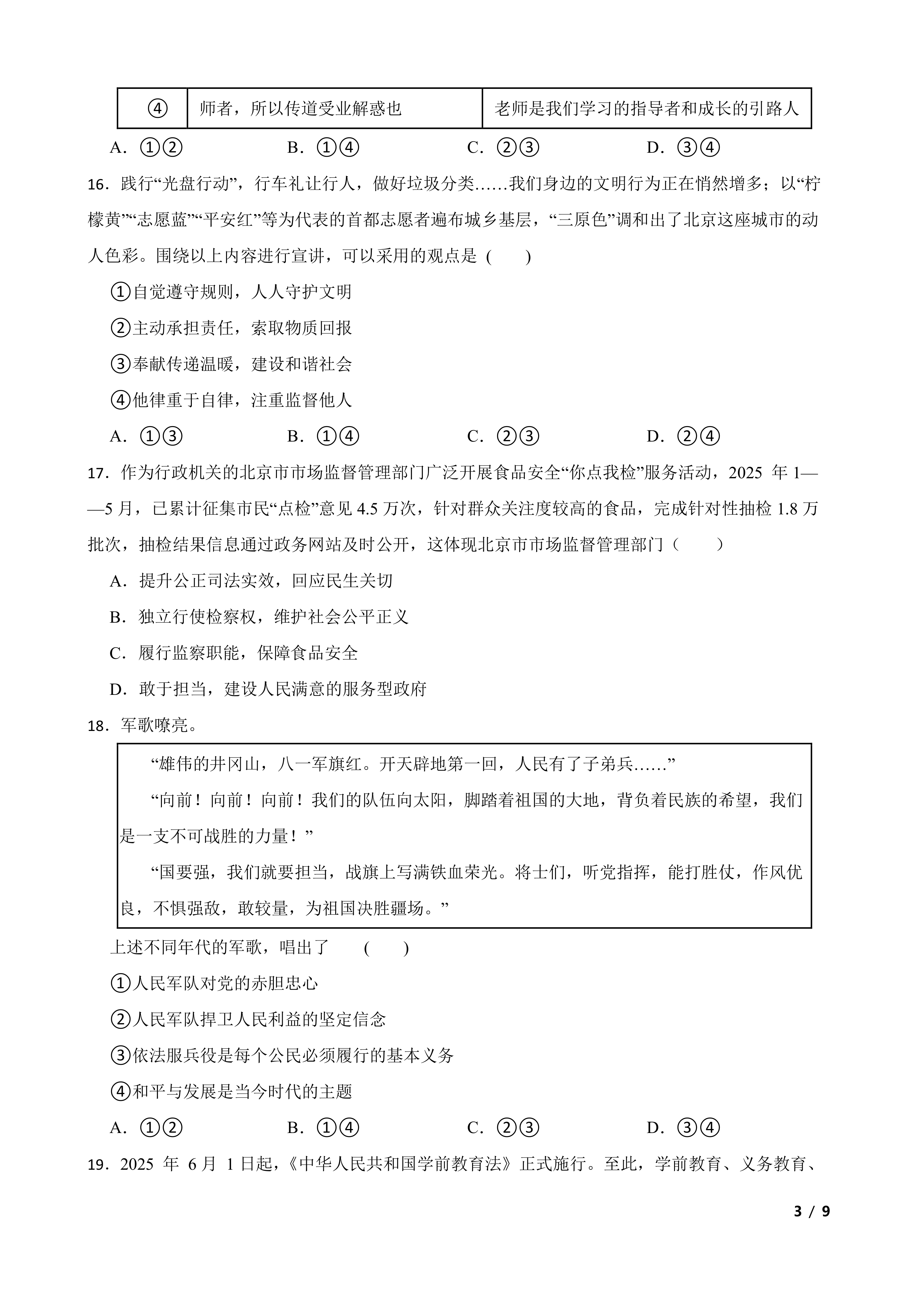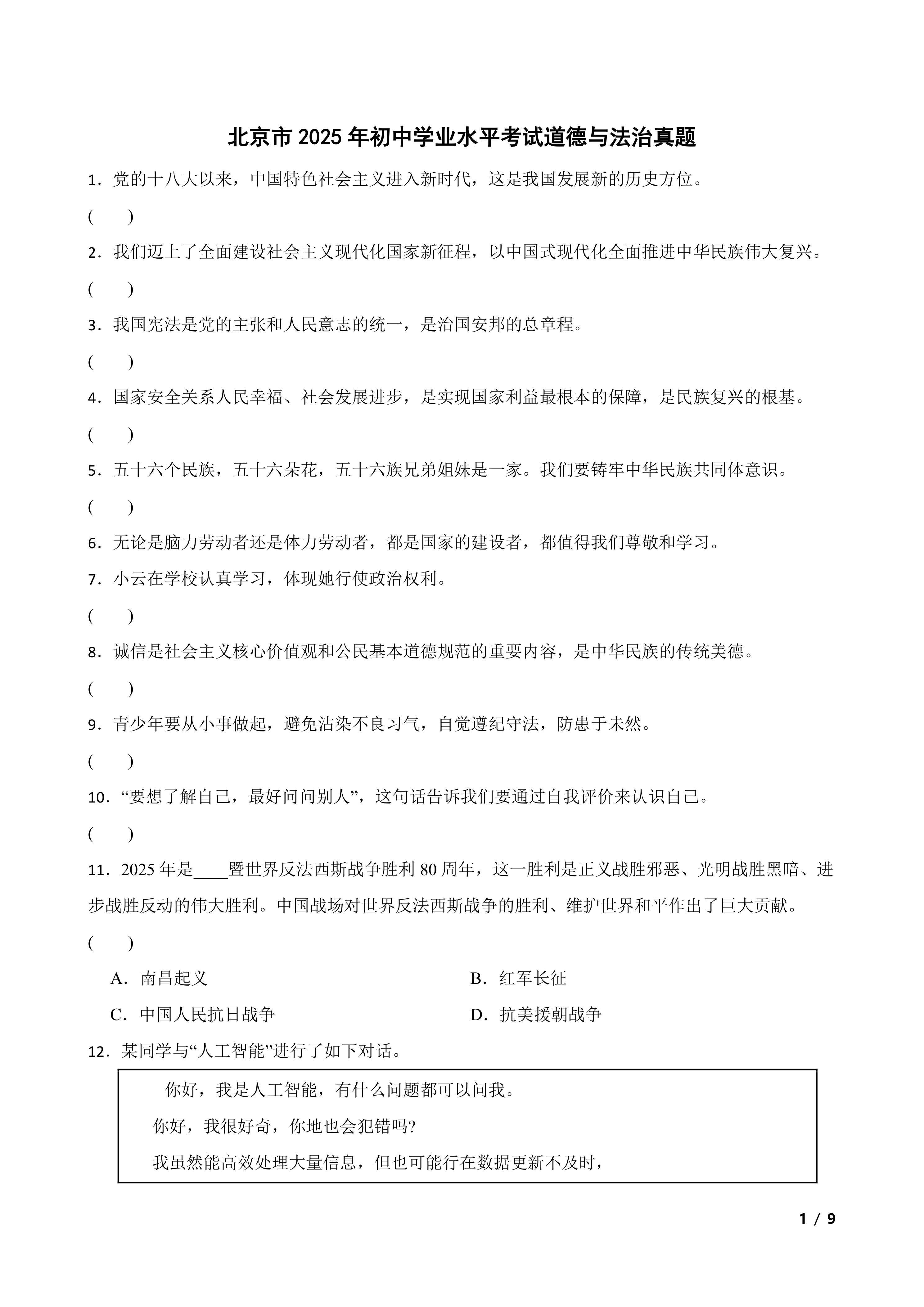 [中考真题]北京市2025年初中学业水平考试道德与法治真题 时间:2026-03-05 热度:°C 加入收藏 我要投稿 点赞() zhengzhi2025真题 上一篇:2025年中考数学一模押题卷(广东省广州市专用)—2025年全国各地市最新中考数学模拟考试(含答案+解析) 下一篇:返回列表