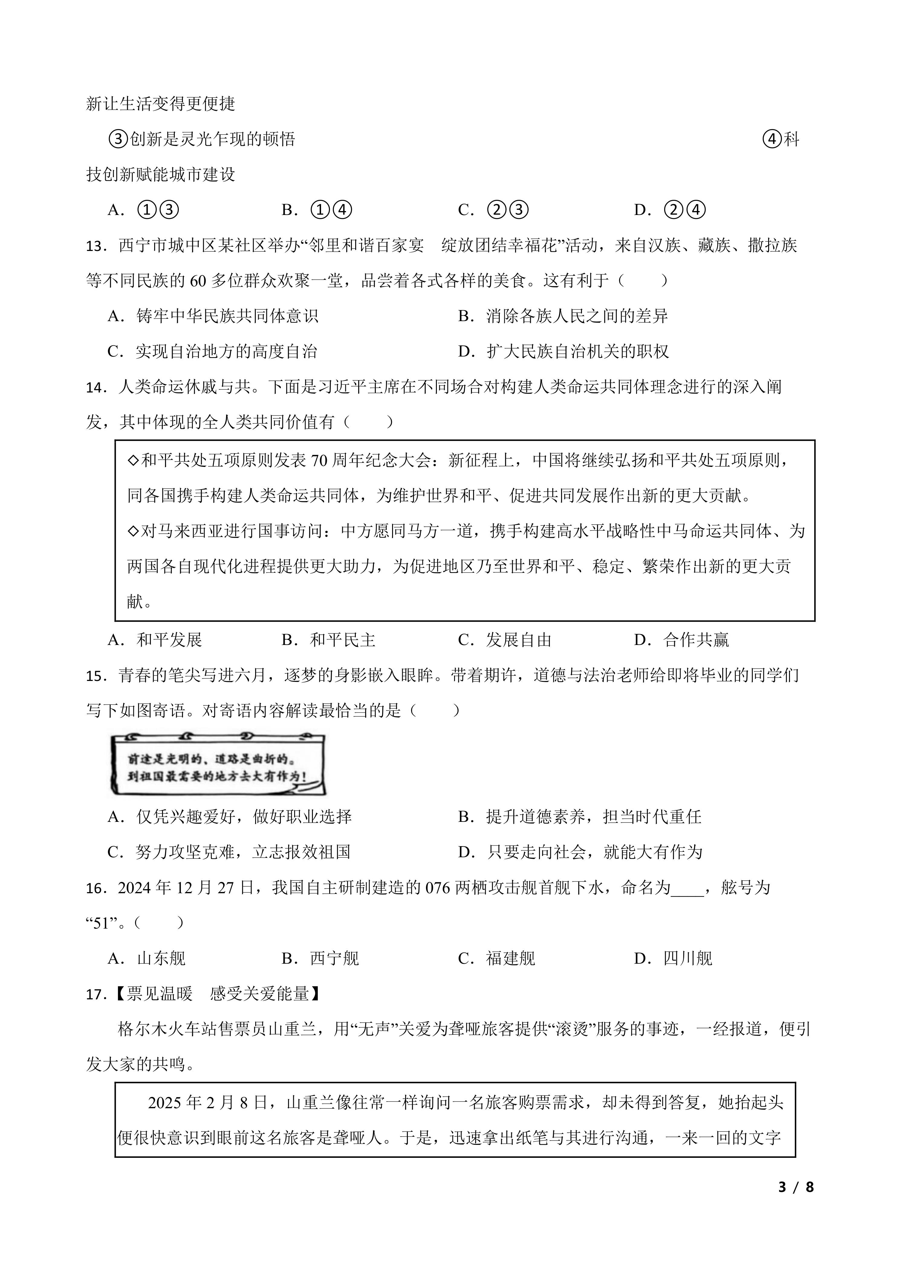 [中考真题]青海省西宁市区2025年中考道德与法治试真题 时间:2026-03-05 热度:°C 加入收藏 我要投稿 点赞() zhengzhi真题中考 上一篇:[中考真题]山东省济宁市2025年中考道德与法治真题 下一篇:返回列表