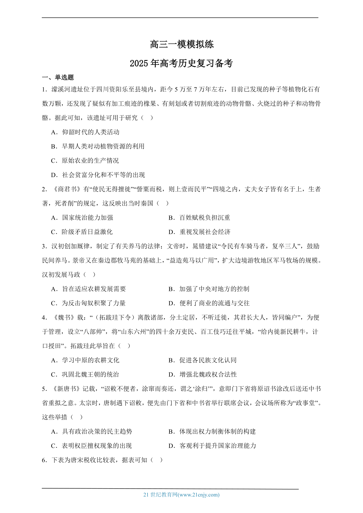 2025年高考历史复习备考