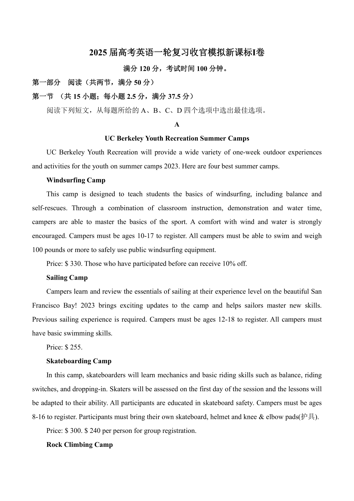 2025届高考英语一轮复习收官模拟