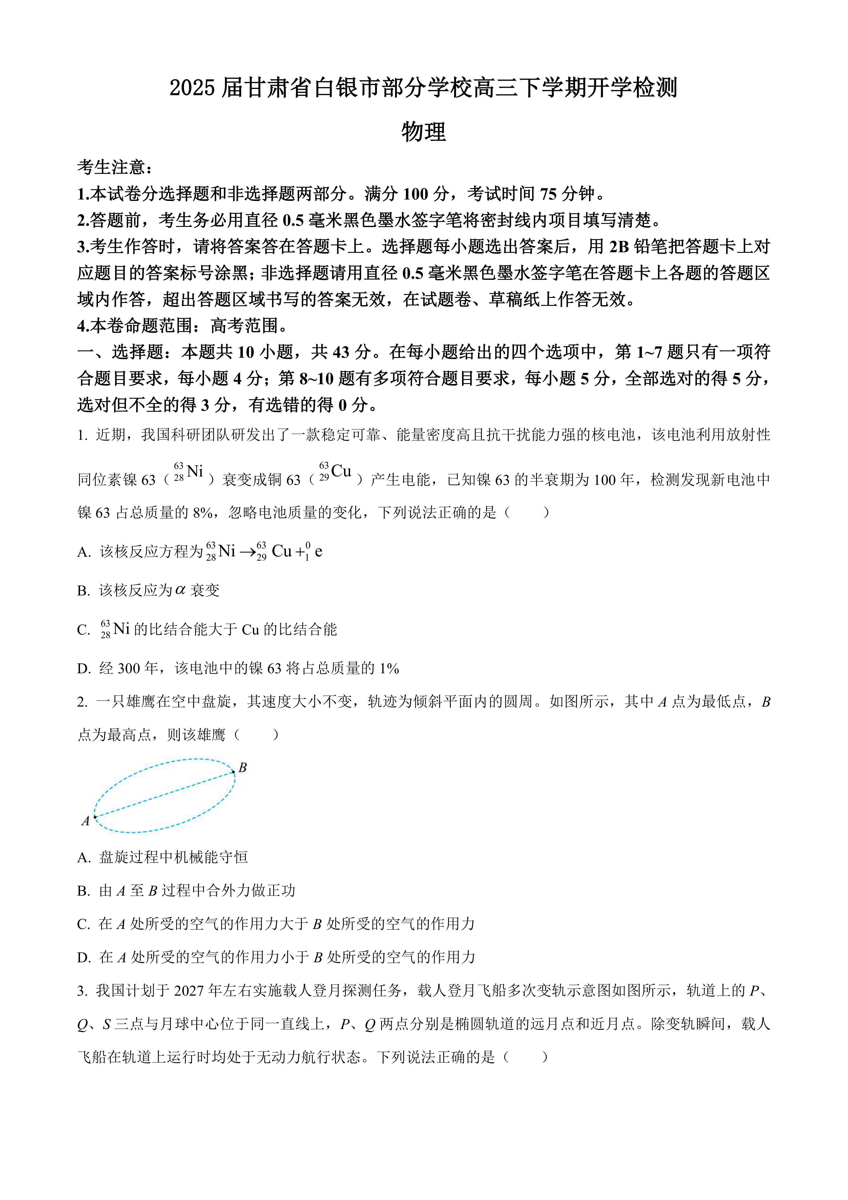 2025届甘肃省白银市部分学校高三下学期开学检测物理试题(含答案) 时间:2025-04-09 热度:°C 加入收藏 我要投稿 点赞() wuli2025白银市 上一篇:2025届安徽省合肥市第一中学高三下学期素养拓展训练4物理试题(含答案) 下一篇:返回列表
