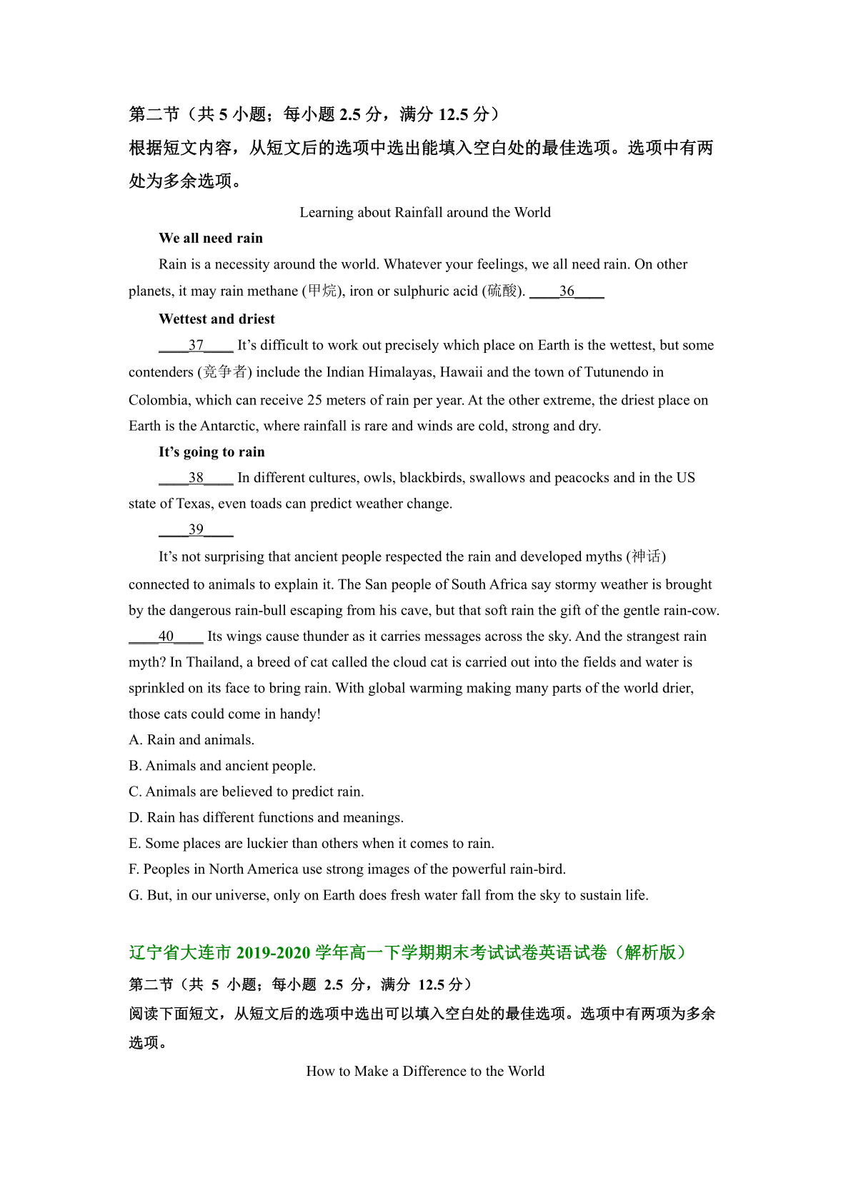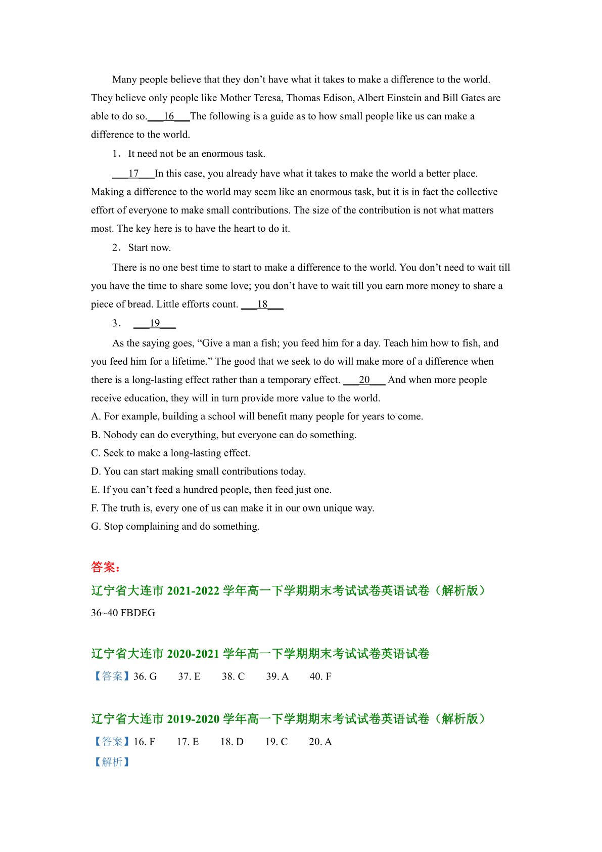 辽宁省大连市2019-2022三年高一下学期英语期末试卷汇编:七选五(含答案) 时间:2024-08-03 热度:°C 加入收藏 我要投稿 点赞() yingyu20222019 上一篇:广西壮族自治区钦州市2022-2023学年高一下学期语文期末考试试卷 下一篇:返回列表