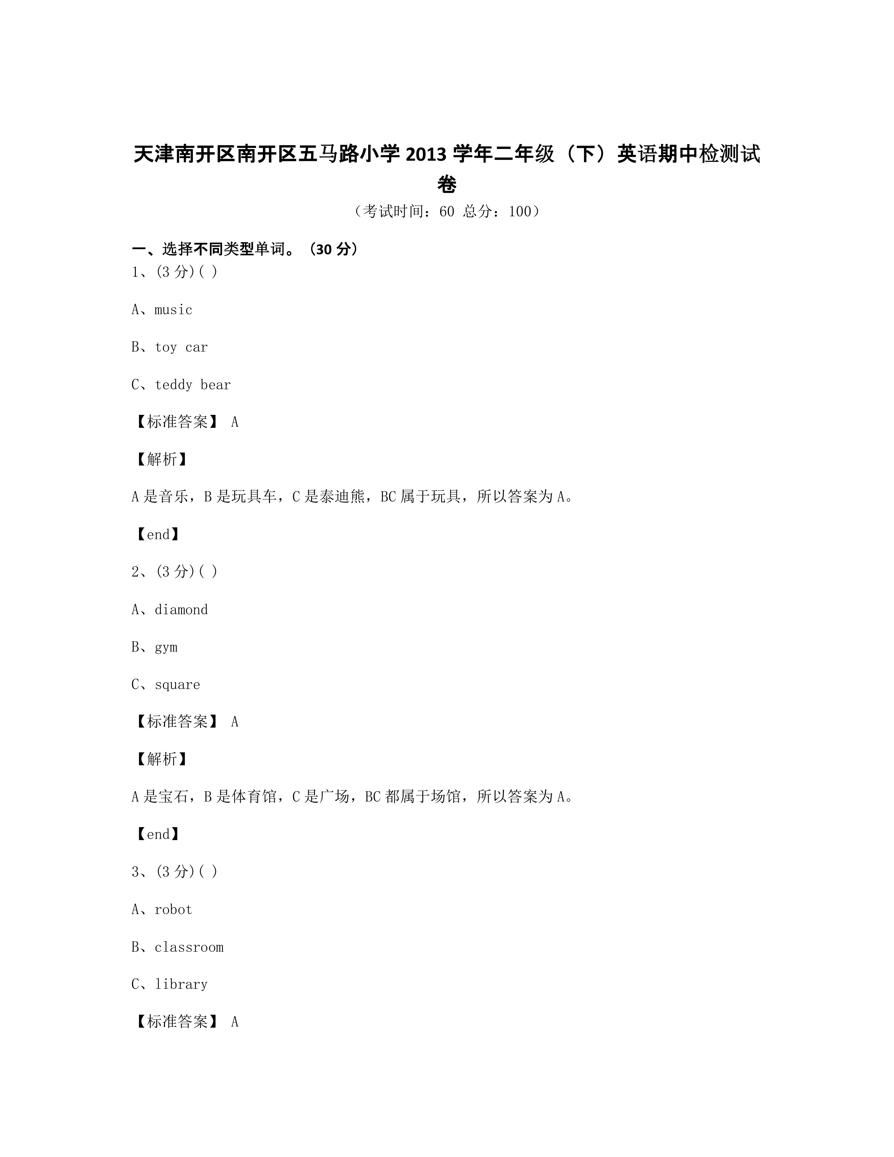 天津南开区南开区五马路小学2013学年二年级(下)英语期中检测试卷 时间:2025-03-17 热度:°C 加入收藏 我要投稿 点赞() yingyu2013南开区 上一篇:人教(新起点)二年级下册期中考试英语试卷(无答案,无听力音频和材料) 下一篇:返回列表
