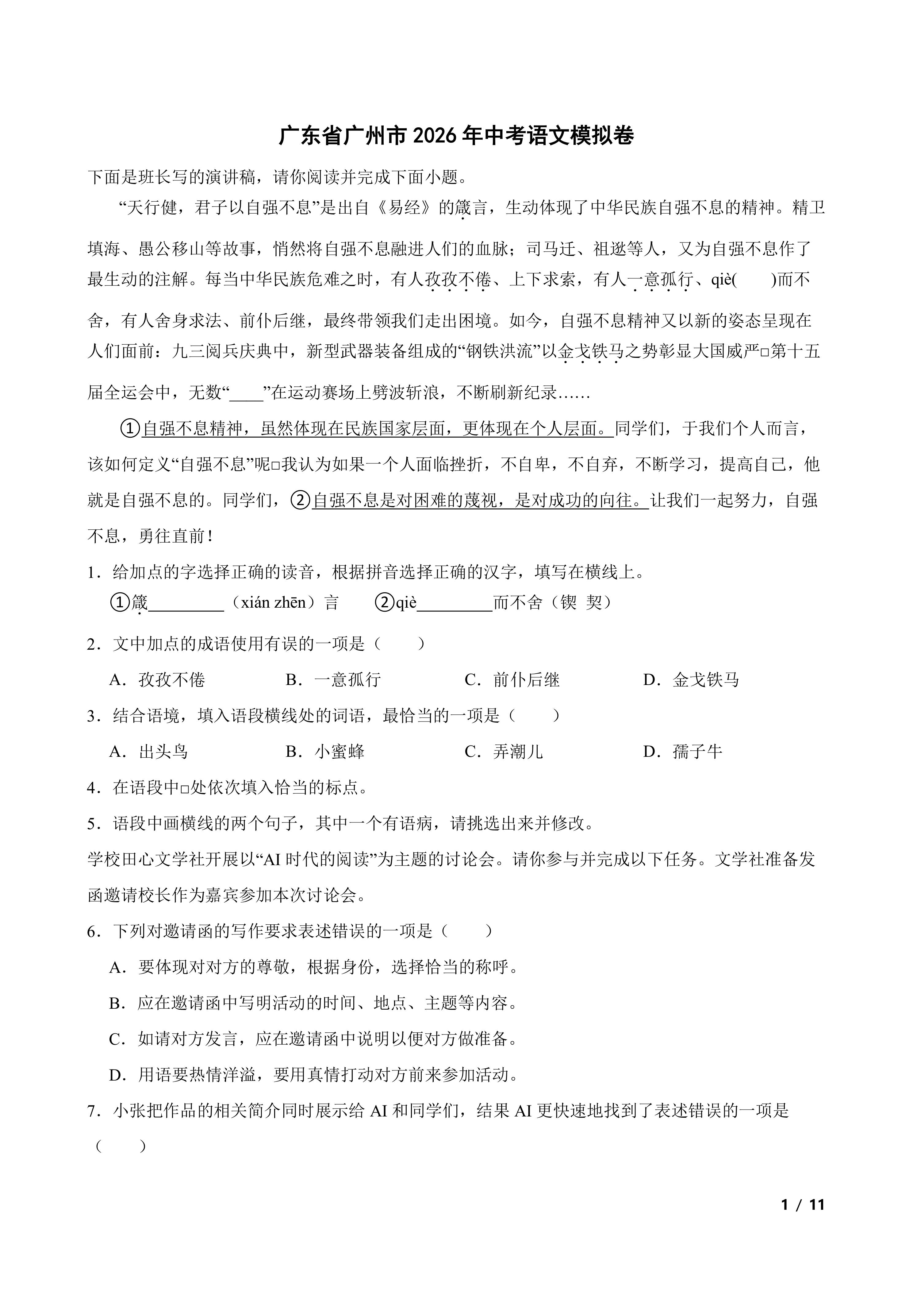 广东省广州市2026年中考语文模拟卷 时间:2026-04-03 热度:°C 加入收藏 我要投稿 点赞() 2026中考yuwen 上一篇:2026年上海市嘉定中考一模数学试题(含答案) 下一篇:返回列表
