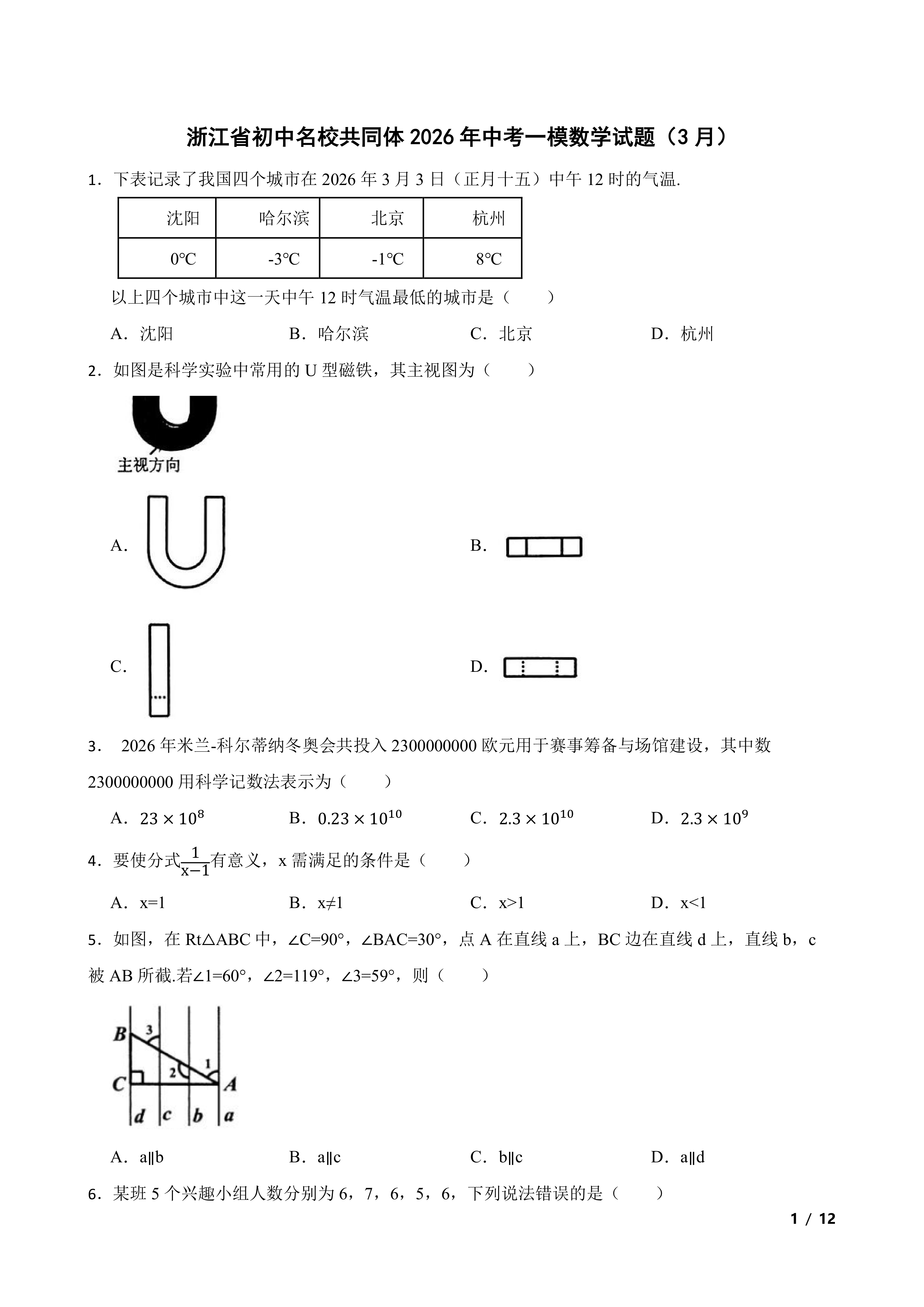 浙江省初中名校共同体2026年中考一模数学试题(3月) 时间:2026-04-03 热度:°C 加入收藏 我要投稿 点赞() 2026一模shuxue 上一篇:2026年上海市松江区九年级中考一模化学试卷(含答案) 下一篇:返回列表
