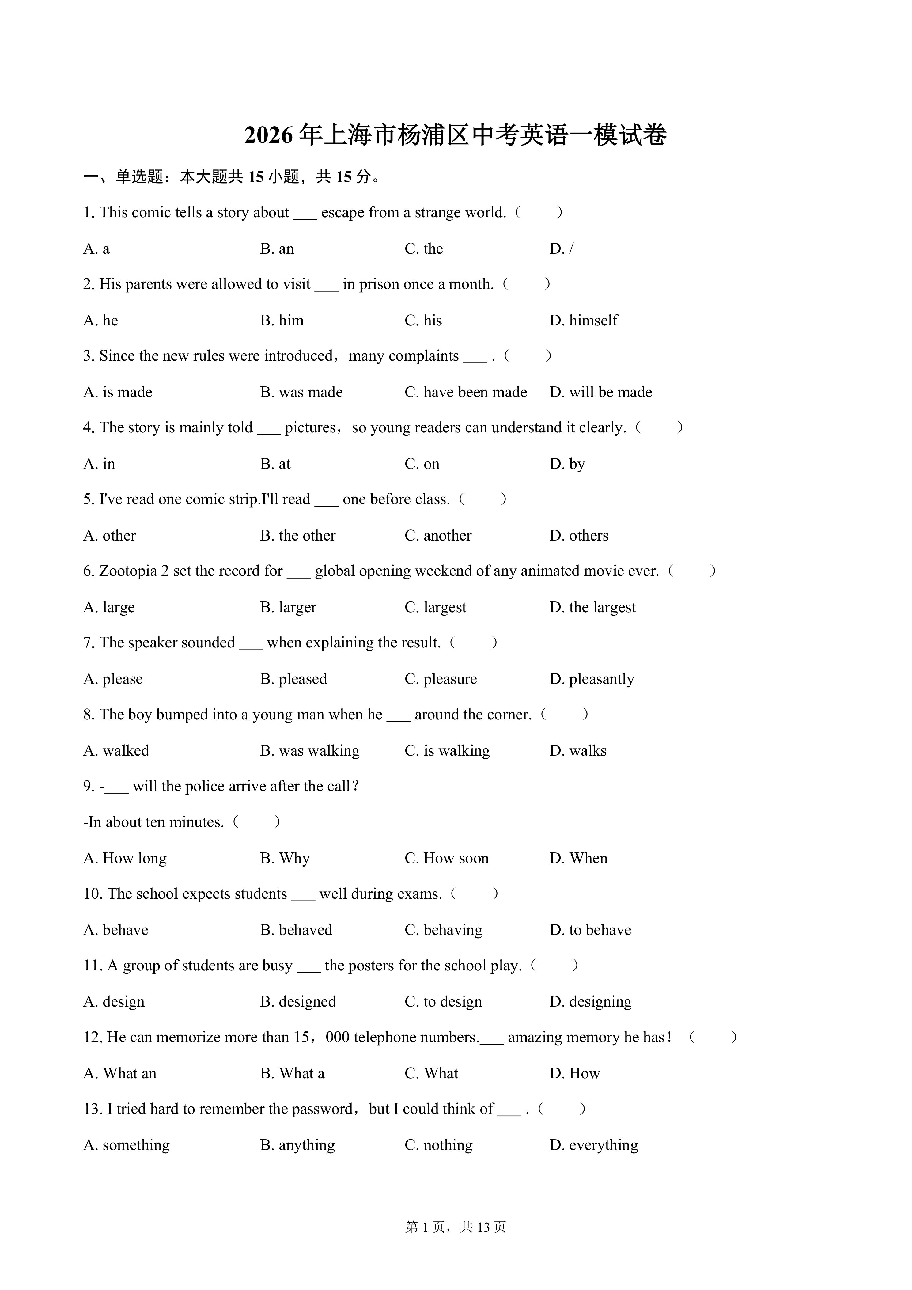 2026年上海市杨浦区中考英语一模试卷(含答案) 时间:2026-04-08 热度:°C 加入收藏 我要投稿 点赞() 杨浦区2026yingyu 上一篇:2026年上海市浦东新区中考一模九年级化学试卷(含答案) 下一篇:返回列表