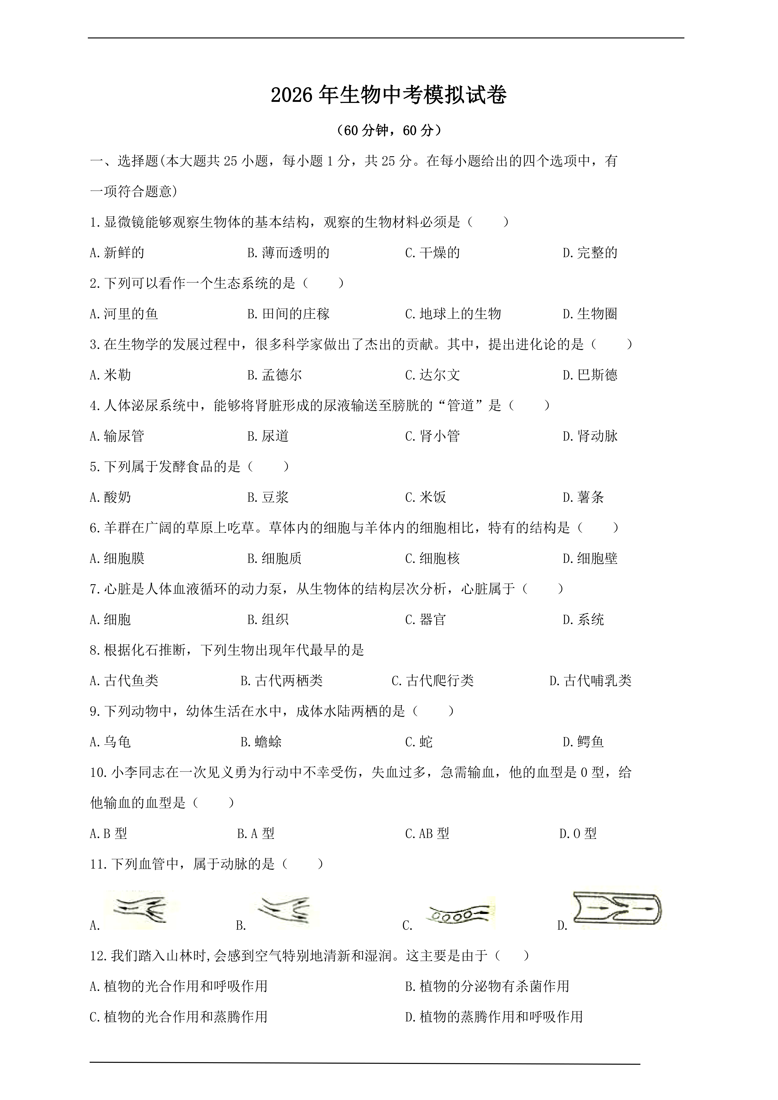 2026生物中考模拟试卷(五)(含答案) 时间:2026-04-28 热度:°C 加入收藏 我要投稿 点赞() 2026含答案shengwu 上一篇:广州市天河区2025—2026学年中考英语一模考试模拟题(含答案解析) 下一篇:返回列表