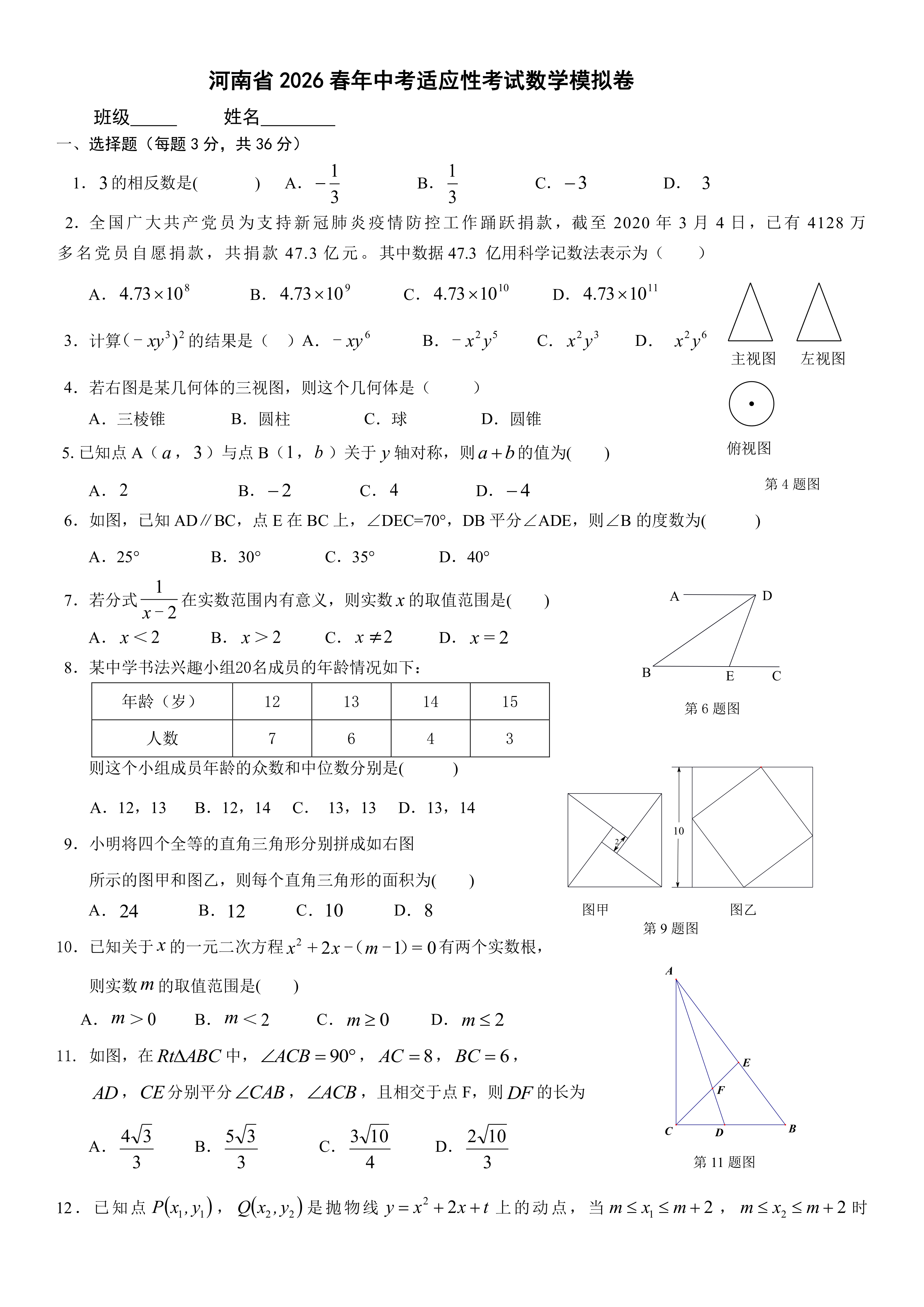 河南省2026春年中考适应性考试数学模拟卷(含答案) 时间:2026-04-28 热度:°C 加入收藏 我要投稿 点赞() 2026春年shuxue 上一篇:2026年辽宁省中考化学模拟试题(六)(含答案) 下一篇:返回列表