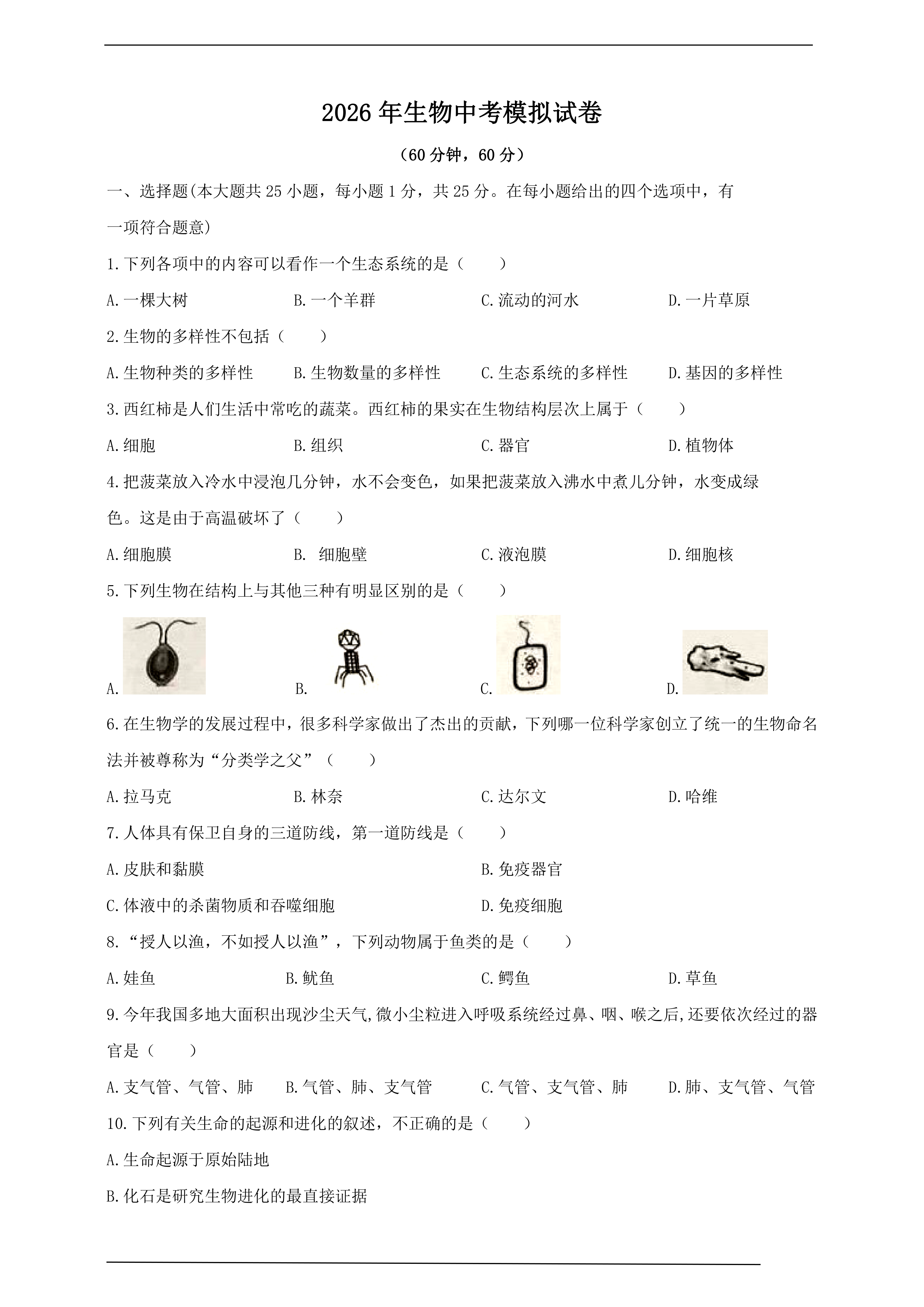 2026生物中考模拟试卷(六)(含答案) 时间:2026-04-28 热度:°C 加入收藏 我要投稿 点赞() 2026含答案shengwu 上一篇:河南省2026春年中考适应性考试数学模拟卷(含答案) 下一篇:返回列表