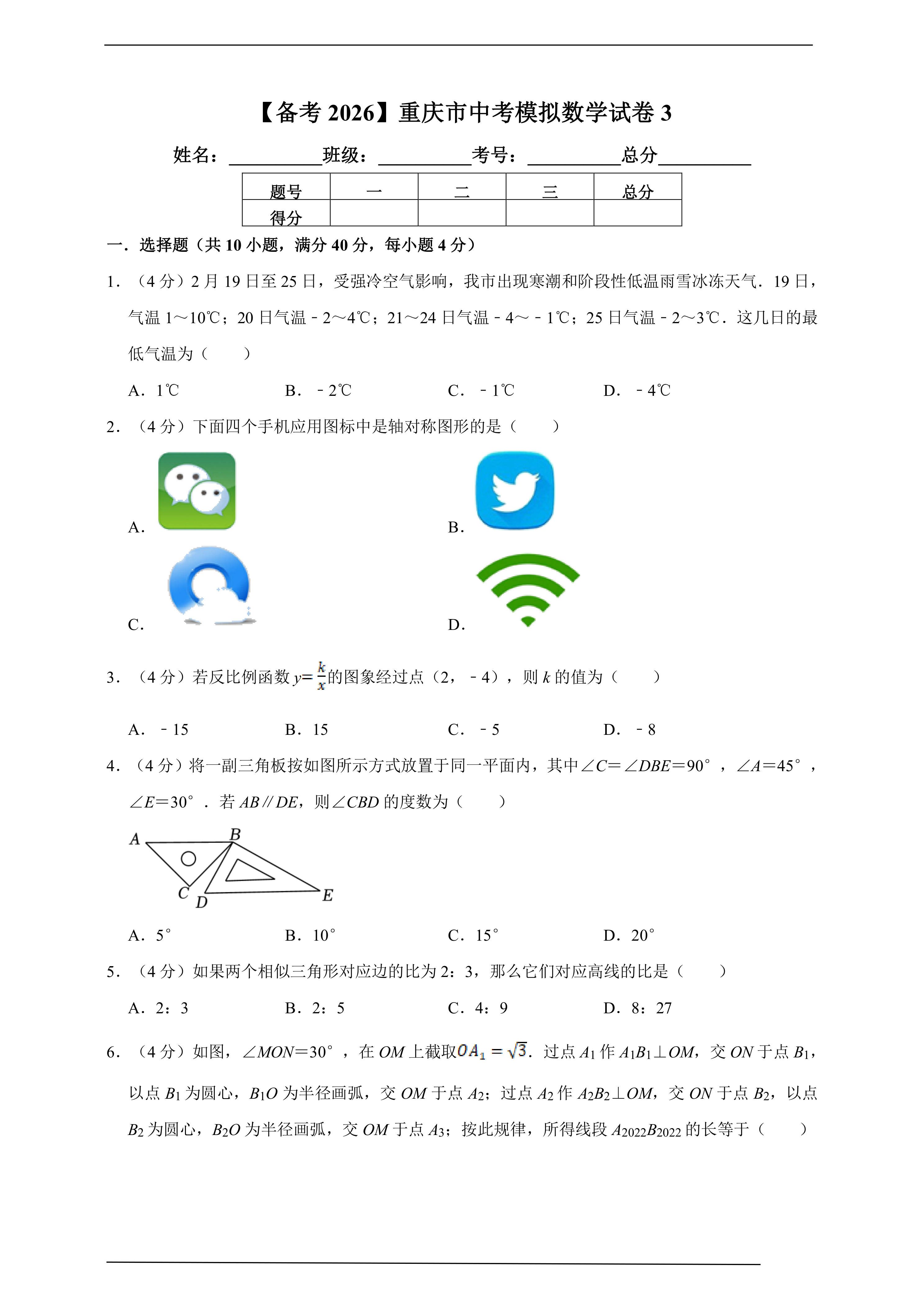 【备考2026】重庆市中考模拟数学试卷3(含解析) 时间:2026-04-28 热度:°C 加入收藏 我要投稿 点赞() 2026数学试卷shuxue 上一篇:2026年中考化学模拟试题(四) 下一篇:返回列表
