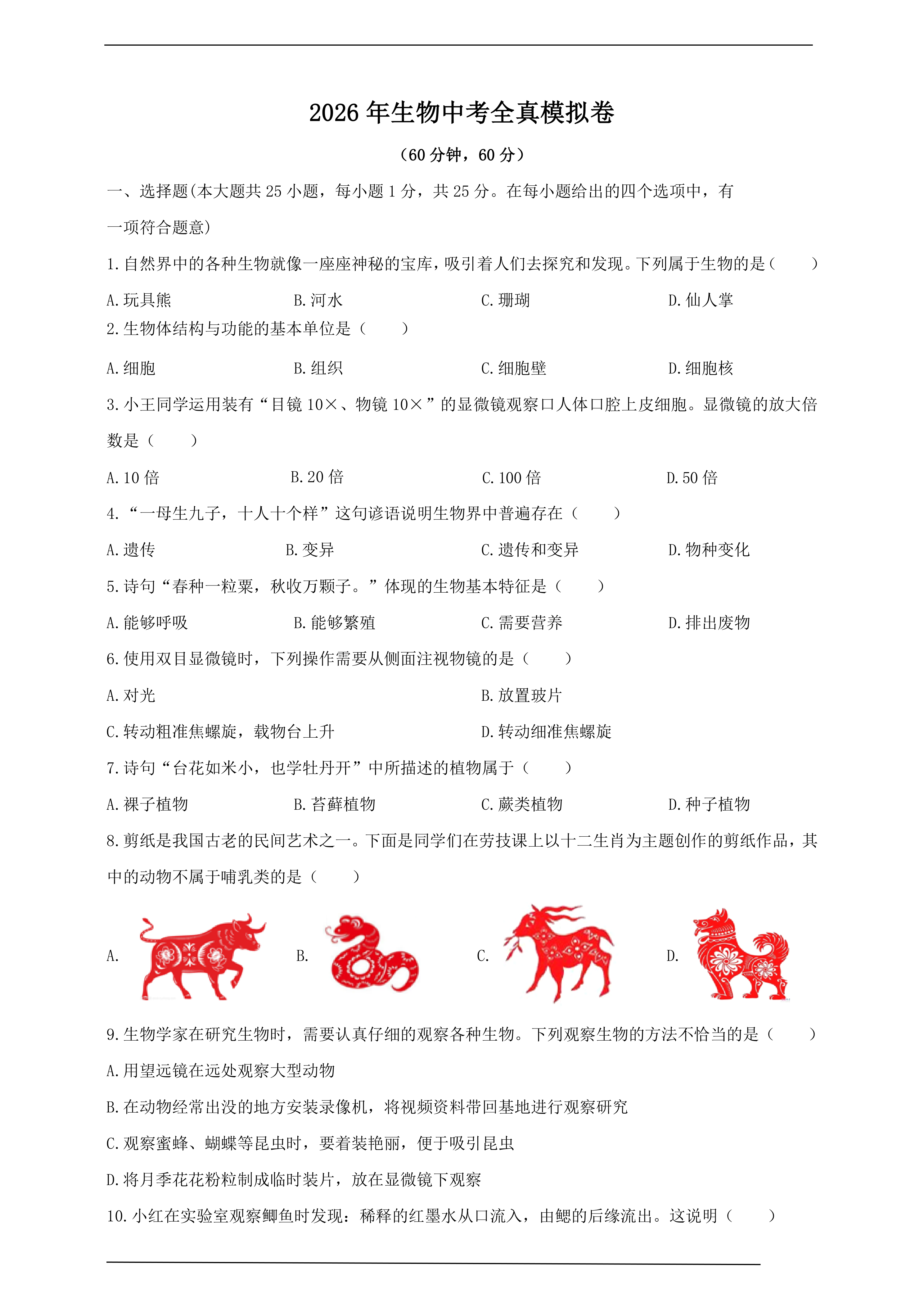 2026年生物中考全真模拟试卷(三)(含答案) 时间:2026-04-28 热度:°C 加入收藏 我要投稿 点赞() 2026含答案shengwu 上一篇:【备考2026】重庆市中考模拟数学试卷3(含解析) 下一篇:返回列表