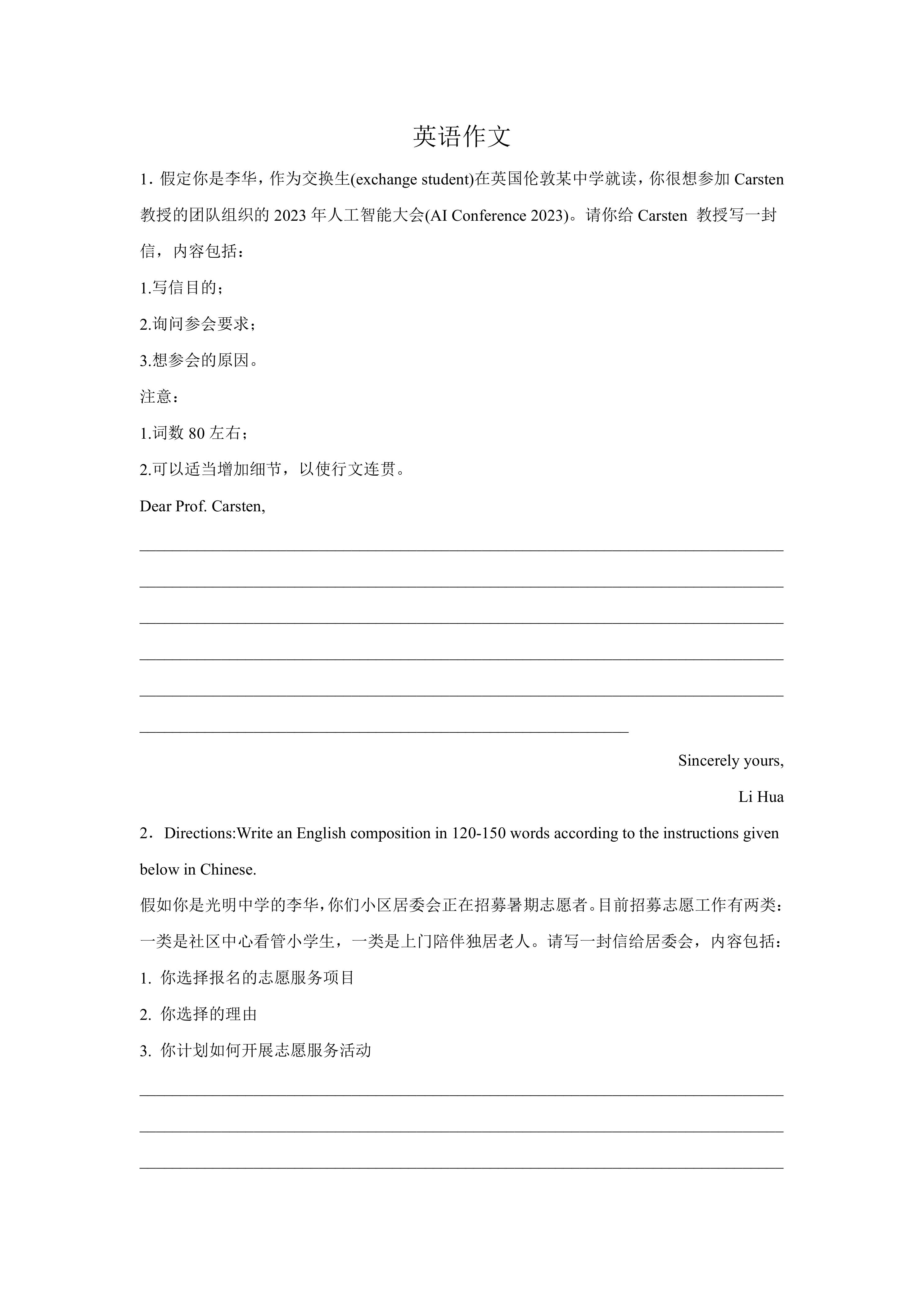 高二英语作文专项训练(含答案) 时间:2025-03-16 热度:°C 加入收藏 我要投稿 点赞() yingyu高二含答案 上一篇:广西壮族自治区南宁市第八中学2024-2025学年高二上学期12月质量检测语文试卷(含答案) 下一篇:返回列表