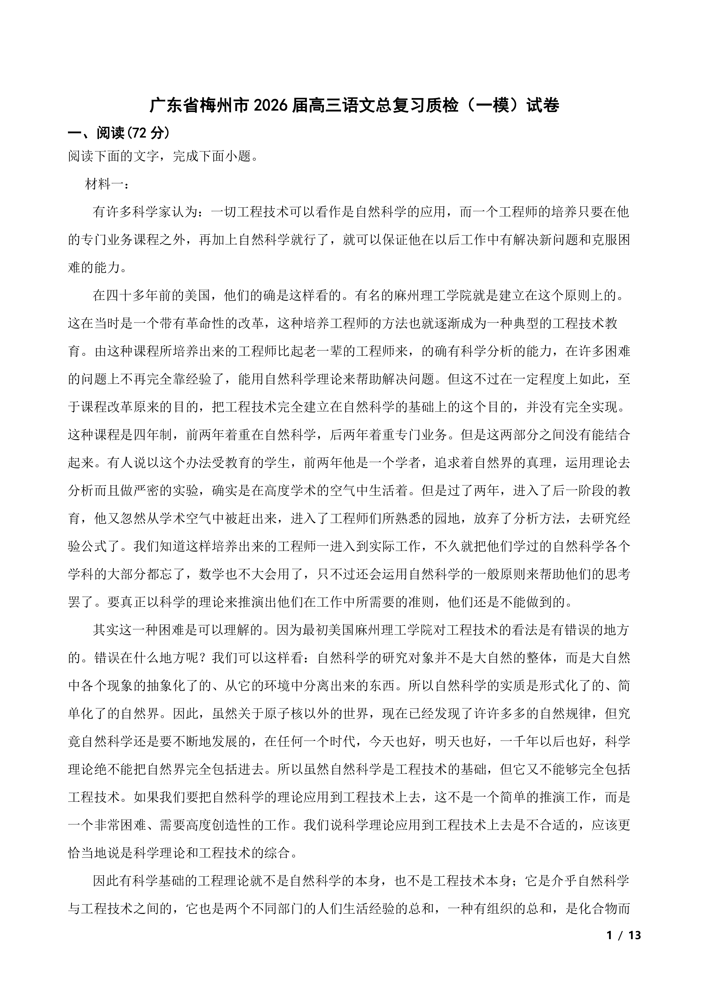 广东省梅州市2026届高三语文总复习质检(一模)试卷 时间:2026-04-03 热度:°C 加入收藏 我要投稿 点赞() 2026一模yuwen 上一篇:广东省广州市天河区2026届高三语文二模试卷 下一篇:返回列表