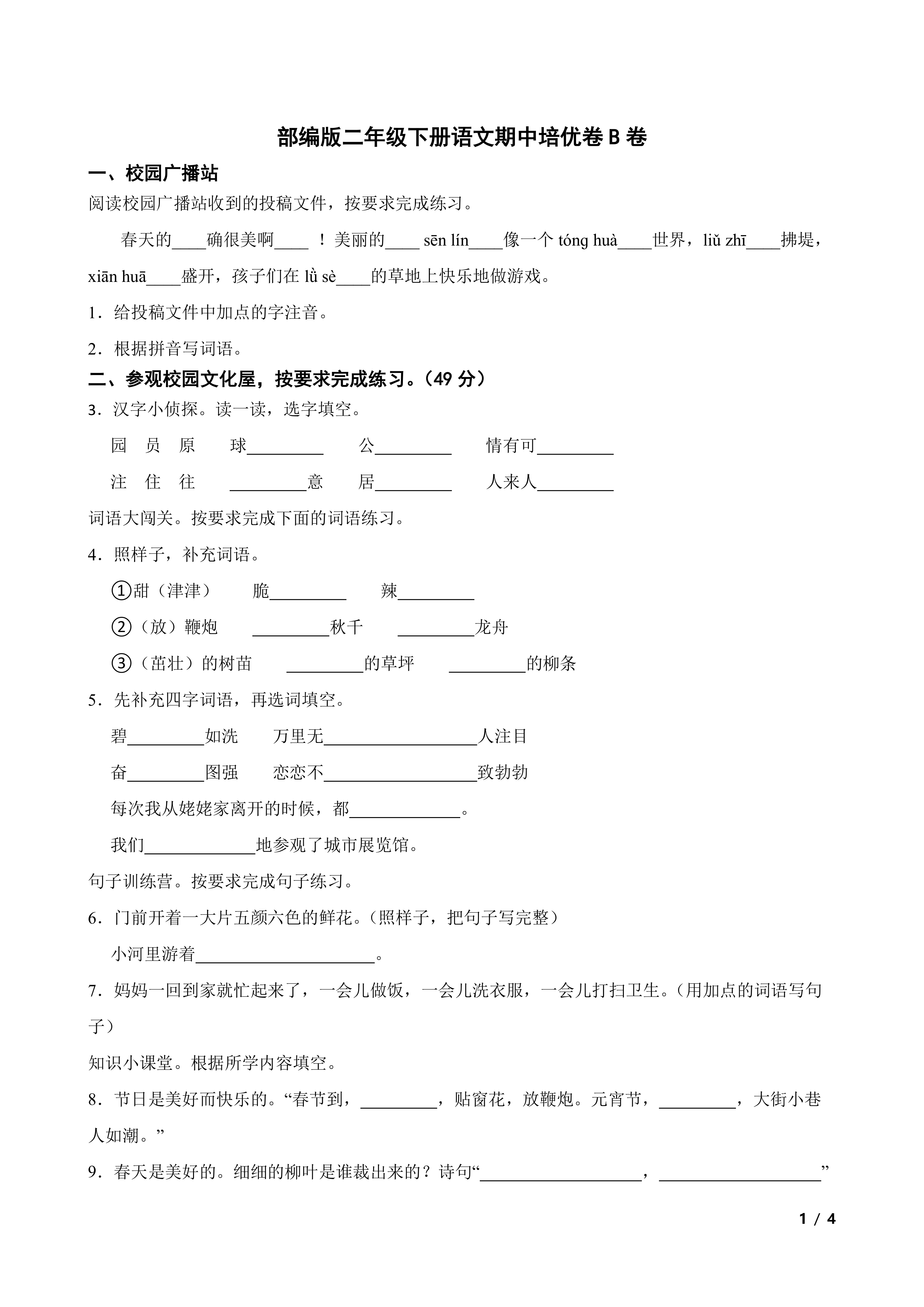 部编版二年级下册语文期中培优卷B卷 时间:2026-04-01 热度:°C 加入收藏 我要投稿 点赞() 部编版下册yuwen 上一篇:广东省深圳市龙华区2023-2024学年二年级下册期末检测数学试卷 下一篇:返回列表