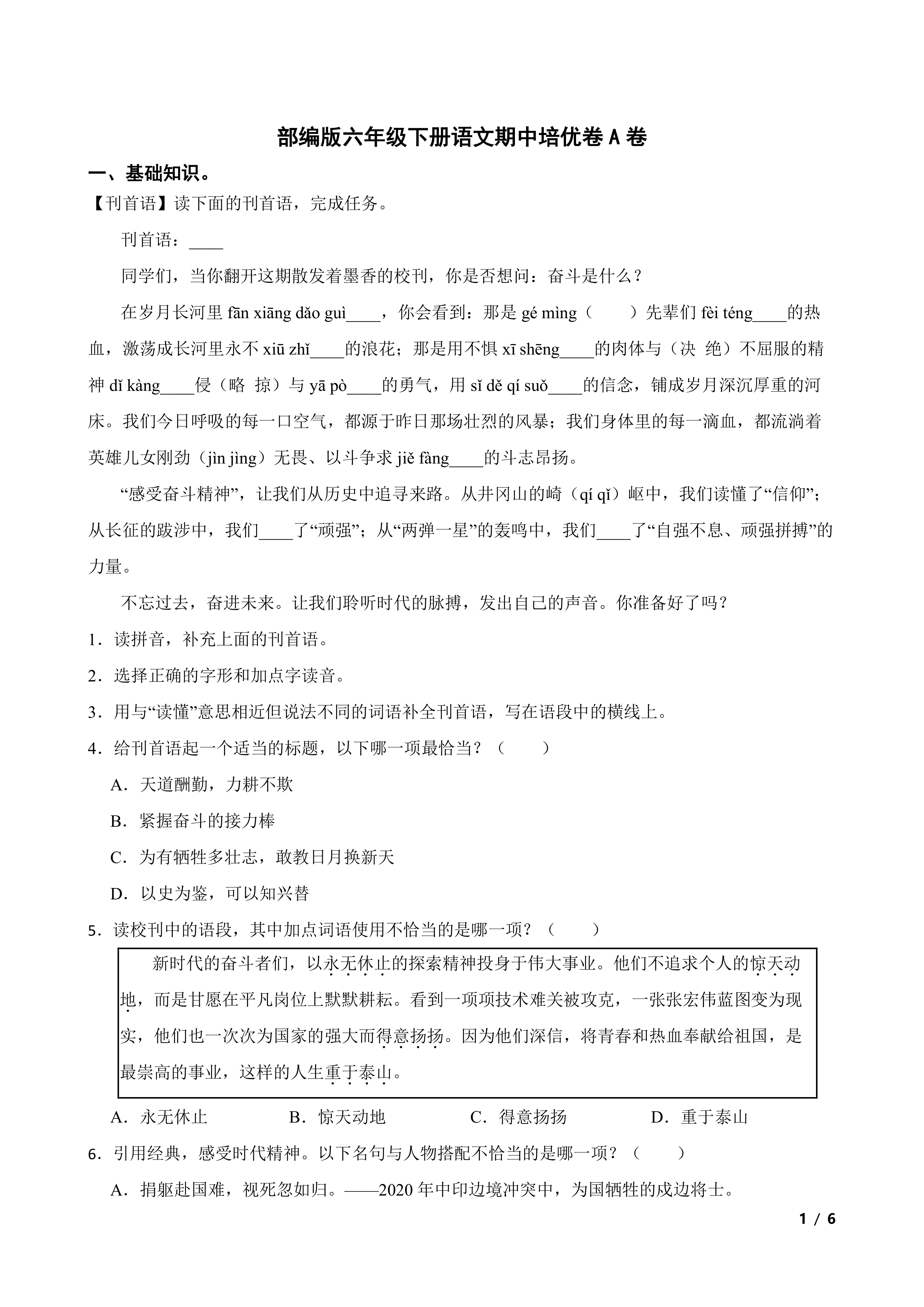 部编版六年级下册语文期中培优卷A卷 时间:2026-04-01 热度:°C 加入收藏 我要投稿 点赞() 部编版下册yuwen 上一篇:人教版(PEP)英语2025年小学毕业水平模拟测试题(一) 下一篇:返回列表
