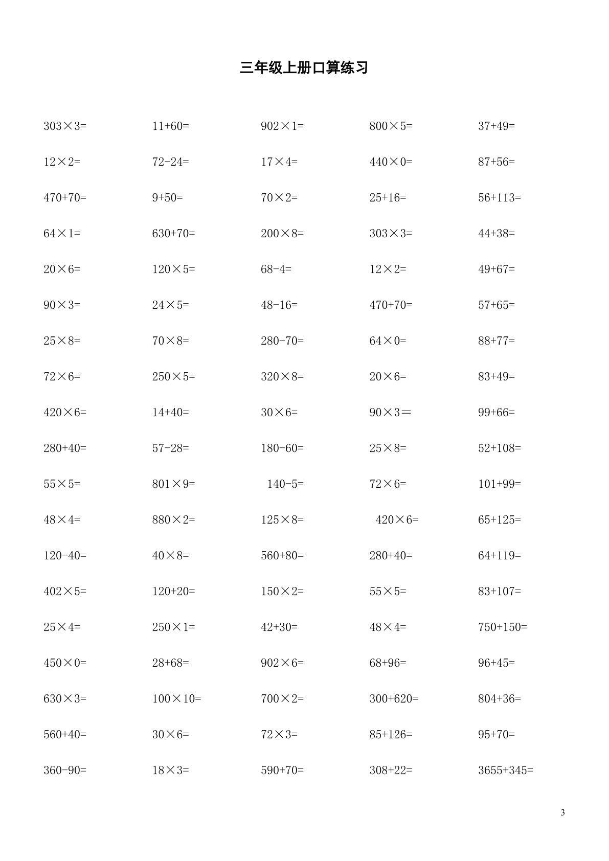 三年级上册数学口算题每页100 时间:2025-03-06 热度:°C 加入收藏 我要投稿 点赞() shuxue100算题 上一篇:重大版三年级英语下册期中试卷(重庆云阳县海峡小学2021年真卷)(含答案) 下一篇:返回列表