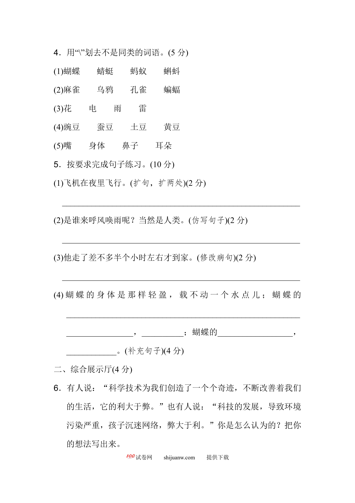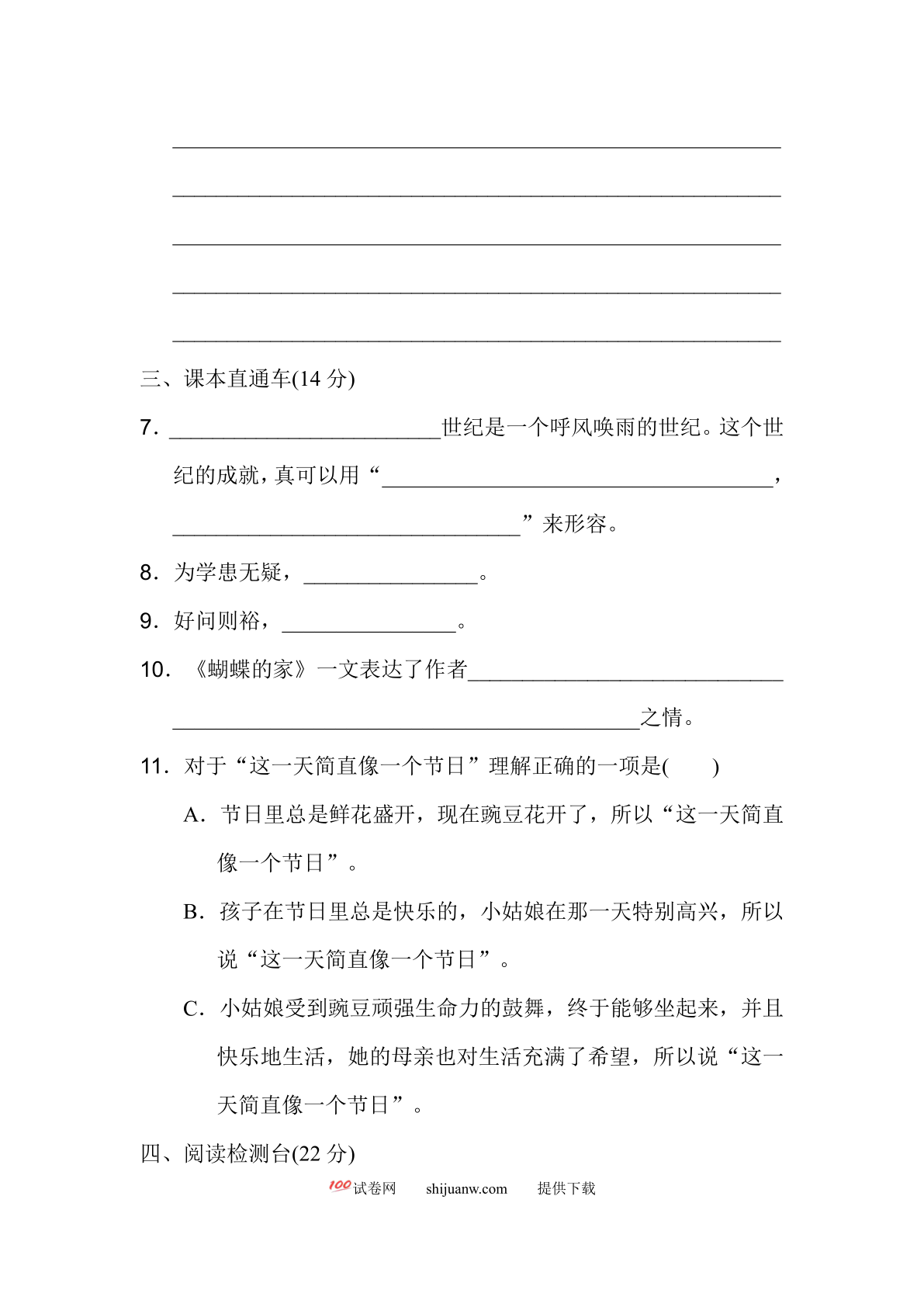 四年级语文下册期末测试卷(10)(有答
